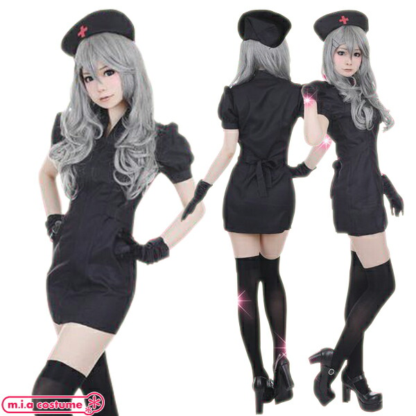 黒 ブラック 無地 ミニ丈 ナース 看護師 看護婦 レディース 婦人 女性サイズ メンズ 男性サイズ 女装子 男の娘 大きいサイズ コスプレ コスチューム 仮装 衣装 Cosplay Costume ハロウィン Halloween イベント 文化祭 新年会 忘年会 撮影会 余興 催事 セクシー Sexy 清楚系 おとなしめ 可愛い かわいい キュート Cute フェミニン プチプラ プレゼント用 ギフト 人気 高品質 誕生日 彼女 彼氏 送料無料 ミアコスチューム ポイント消化