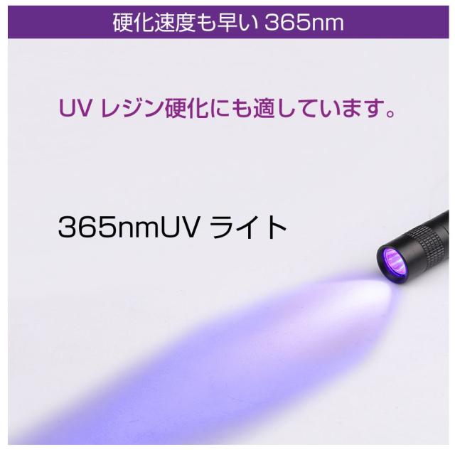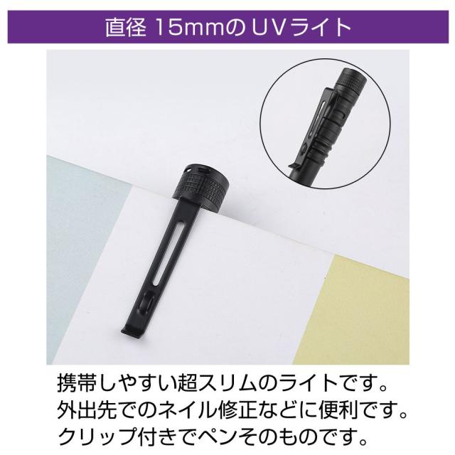 携帯しやすい超スリムUVペンライト クリップ付きでボールペンサイズです! UVレジン硬化に適した365nmUVライトです! すぐに使用できるように国産電池を同封してお届け! 簡単に持ち運べるので出先や旅行時のネイルケア用にも最適です! |
