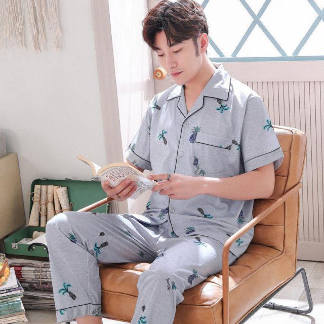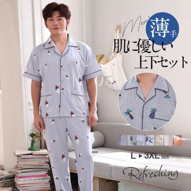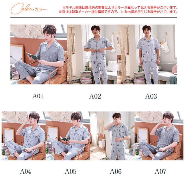 【~4/24まで P10倍+限定クーポン】 パジャマ メンズ 夏 半袖 前開き 綿 ルームウェア セットアップ 長パンツ 紳士 部屋着 ナイトウェア 無地 コットン 男性 男