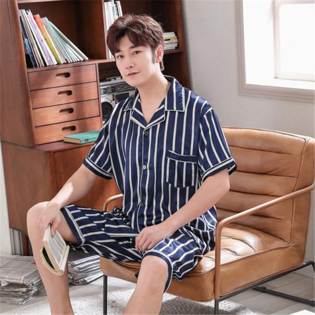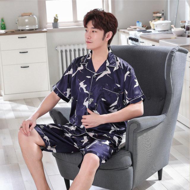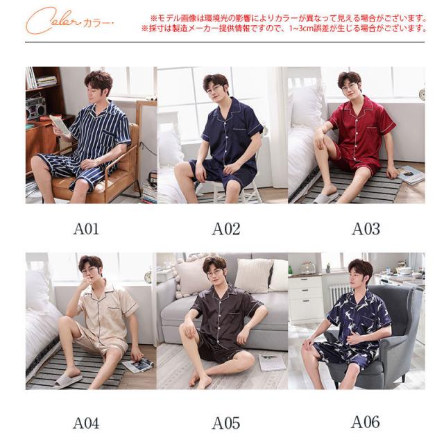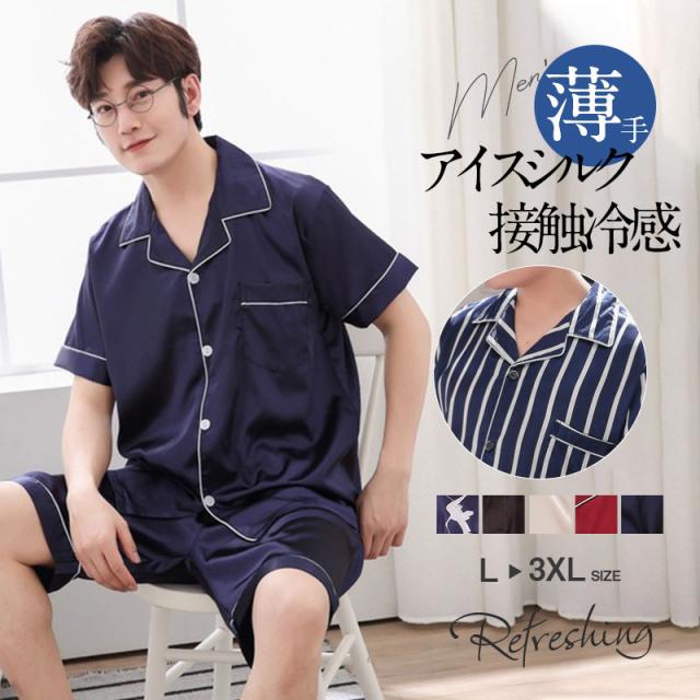 【水曜日まで!10%クーポン配布中】 パジャマ メンズ 夏 半袖 アイスシルク 寝巻き 上下セット ルームウェア 部屋着 サマー 前開き カジュアル 涼しい ゆったり