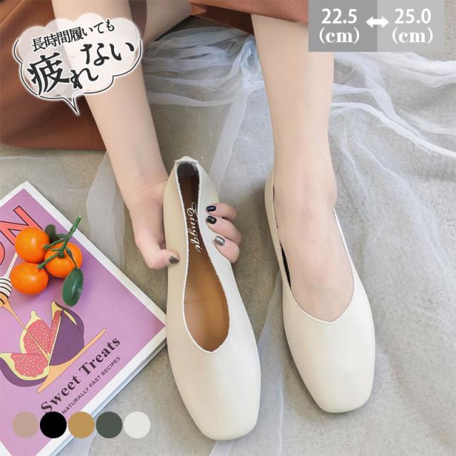 【~4/20まで P2倍+限定クーポン】 パンプス フラットシューズ 歩きやすい 痛くない 靴 レディース ローヒール スクエアトゥ フラット 通勤 オフィス 春 夏 秋