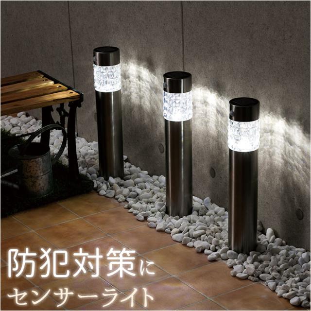 | 商品説明 | ・高輝度SMD使用!明るく照らしてくれる「センサーソーラーポールライト」が新登場。 【防犯対策にぴったり】 ・地面に埋め込むガーデンマーカー。庭や玄関に設置することで防犯面も安心。 【感知センサーで明るさアップ】 ・暗くなると立体的なクリア面が、ガーデンマーカーとして点灯。感知センサーが反応すると、より明るく点灯し、約20秒で通常時の明るさに戻る仕組み。 【ソーラーパネル充電式】 ・ソーラーパネル面に太陽の光が当たるように設置。点灯時間の目安は、フル充電で約6〜8時間。(※日光が当たる時間により異なります。) 【繰り返し使用OK】 ・約500回繰り返し使用できる!光源はSMD3個。(※交換不可です。) |