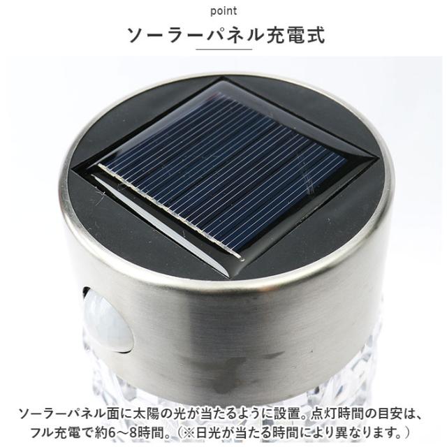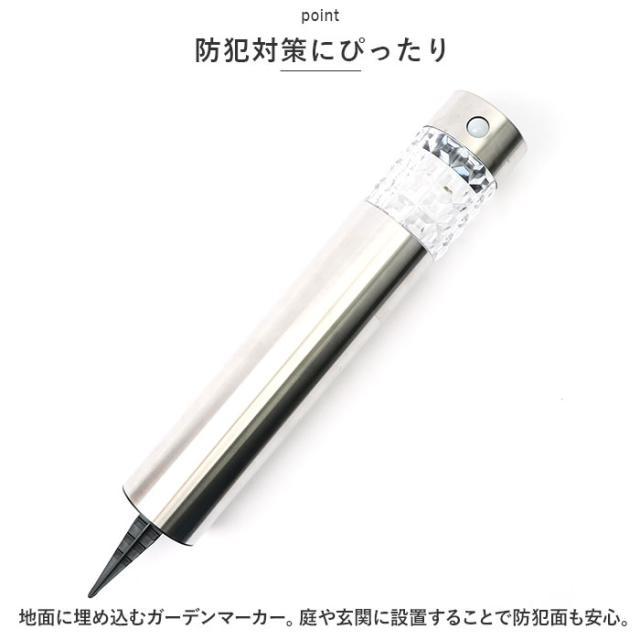 | 商品説明 | ・高輝度SMD使用!明るく照らしてくれる「センサーソーラーポールライト」 2個セット。 【防犯対策にぴったり】 ・地面に埋め込むガーデンマーカー。庭や玄関に設置することで防犯面も安心。 【感知センサーで明るさアップ】 ・暗くなると立体的なクリア面が、ガーデンマーカーとして点灯。感知センサーが反応すると、より明るく点灯し、約20秒で通常時の明るさに戻る仕組み。 【ソーラーパネル充電式】 ・ソーラーパネル面に太陽の光が当たるように設置。点灯時間の目安は、フル充電で約6〜8時間。(※日光が当たる時間により異ります。) 【繰り返し使用OK】 ・約500回繰り返し使用できる!光源はSMD3個。(※交換不可です。) |