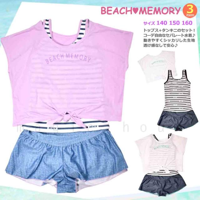◆ BEACH MEMORY ビーチメモリー キッズ ジュニア ガールズ タンキニ 水着 Tシャツ 3点 セット ボーダー柄 スイムウェア◆