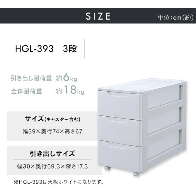 チェスト 3段 完成品 スリム ローチェスト タンス プラスチック 幅39 奥行74 高さ67 開閉スムーズ 収納ボックス 引き出し 収納ケース キャスター付き 衣類収納ケース 衣装ケース 大容量 押入れ収納 衣類収納 アイリスオーヤマ HGL-393 *