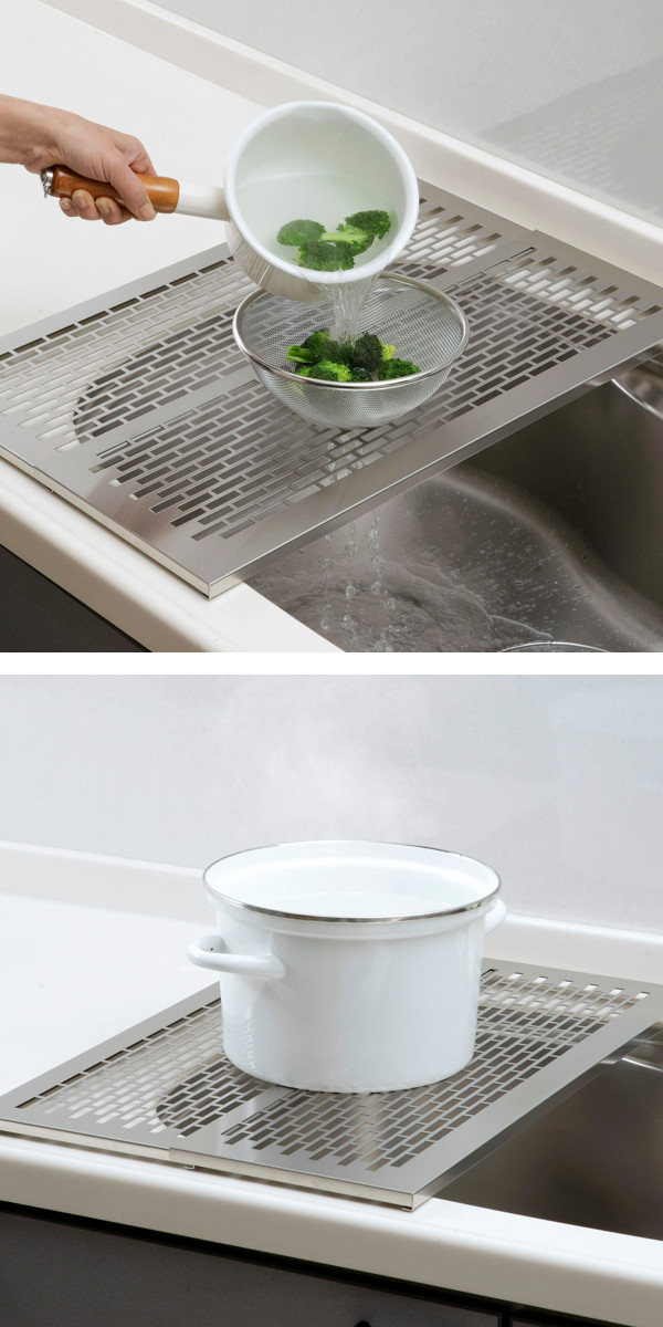 作業台や水切り、湯切りにも使えるステンレス製プレート