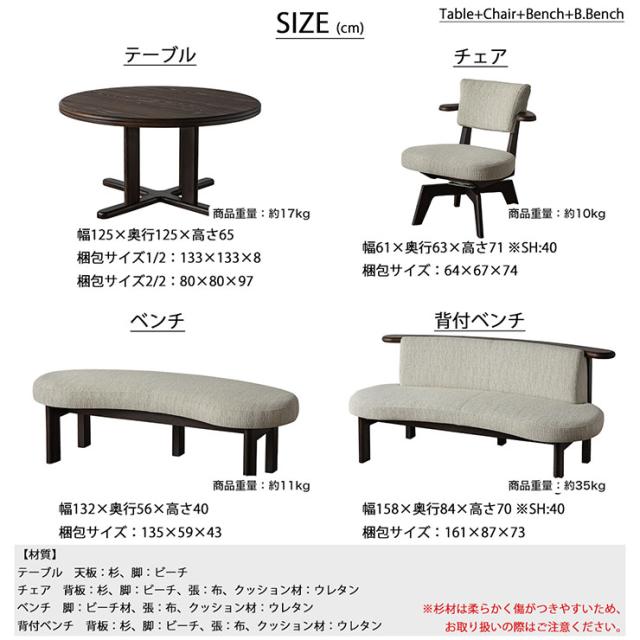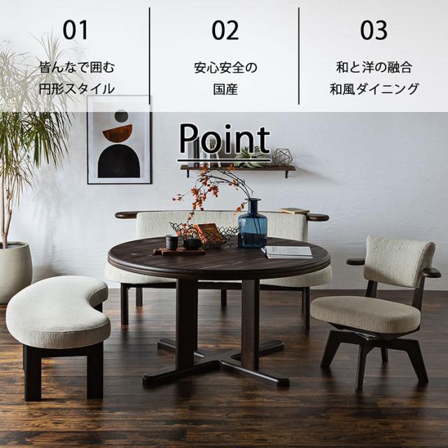 【搬入・組立設置付き】国産 ダイニング4点セット 幅125cm 風早 円形ダイニングセット 円形ダイニングテーブル ダイニングテーブルセット ダイニングチェア ダイニングベンチ 回転チェア チェア ベンチ 背付きベンチ 木製