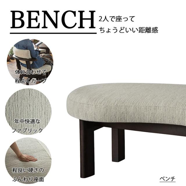 ベンチ 脚:ビーチ材、張:布、クッション材:ウレタン
