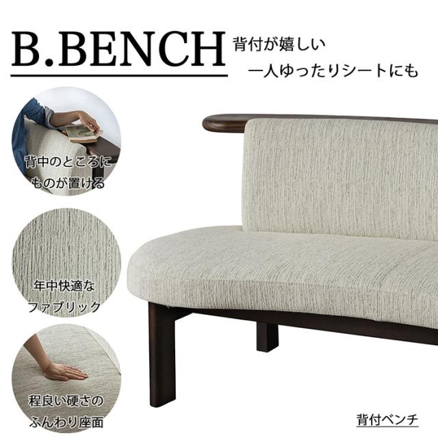 背付ベンチ 背板:杉、脚:ビーチ、張:布、クッション材:ウレタン