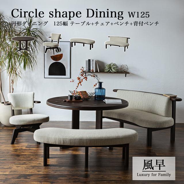 【搬入・組立設置付き】国産 ダイニング4点セット 幅125cm 風早 円形ダイニングセット 円形ダイニングテーブル ダイニングテーブルセット ダイニングチェア ダイニングベンチ 回転チェア チェア ベンチ 背付きベンチ 木製