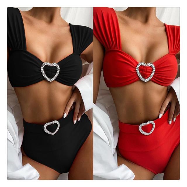 レディース ファッション 水着 ハイウェストビキニ Couture Seduc. 体型カバー カワイイ シルバー ハートモチーフ ベルト 袖 2色 S/M YZ018
