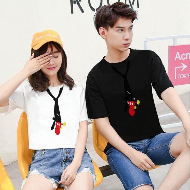 ネクタイ風Tシャツ ペアルックTシャツ 半袖 ミッキー 2色展開 カットソー レディース メンズ ディズニー Q114