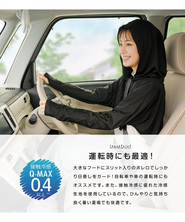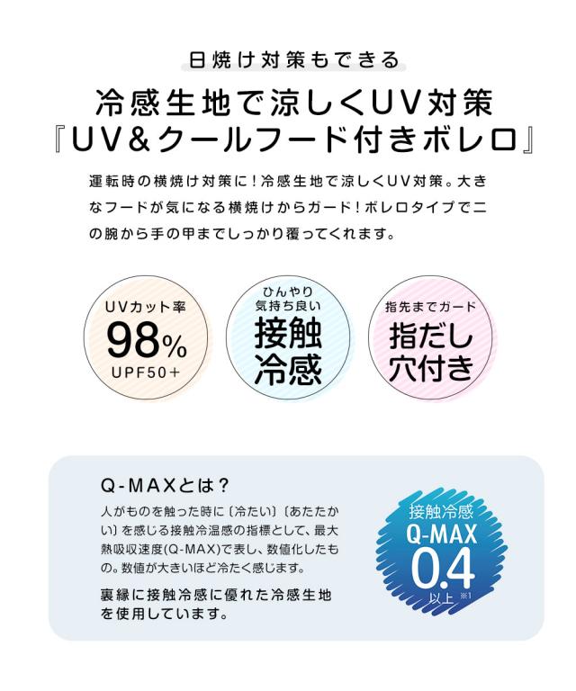 運転時の横焼け対策に!冷感生地で涼しくUV対策『UV&クールフード付きボレロ』