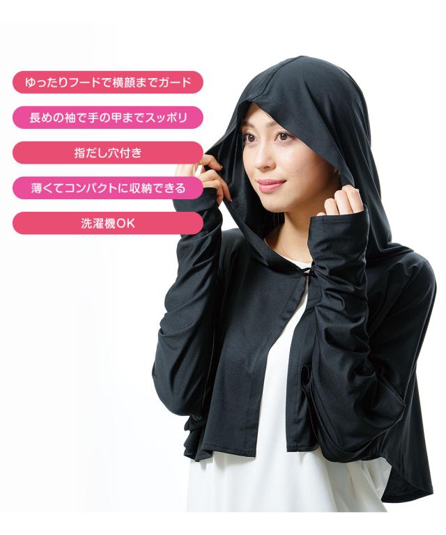 ■フード付きボレロで顔から上半身をガード!