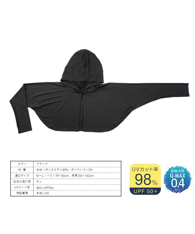 UV&クールフード付きボレロ ボレロ アームカバー uv 冷感 ボレロ カーディガン ショート 丈 夏 レディース uvカット 折りたたみ コンパクト 大きいサイズ 夏用 ひんやり 接触冷感 黒 ブラック 買い物 車 運転 ガーデニング 自転車 遮熱 遮光 20
