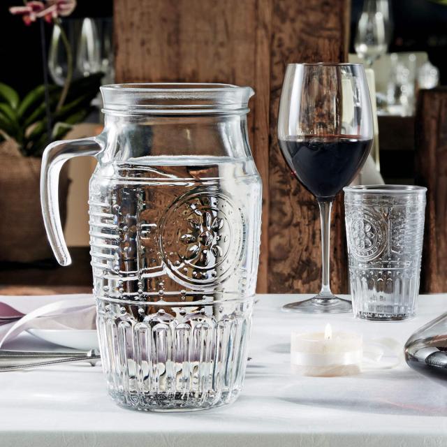 ボルミオリ・ロッコ ピッチャー 1.8L ROMANTIC ロマンティック ガラス ( 水差し デカンタ カラフェ デキャンタ レリーフ アンティーク風 ジュース入れ アイスコーヒー フレーバーウォーター おしゃれ 高級感 )