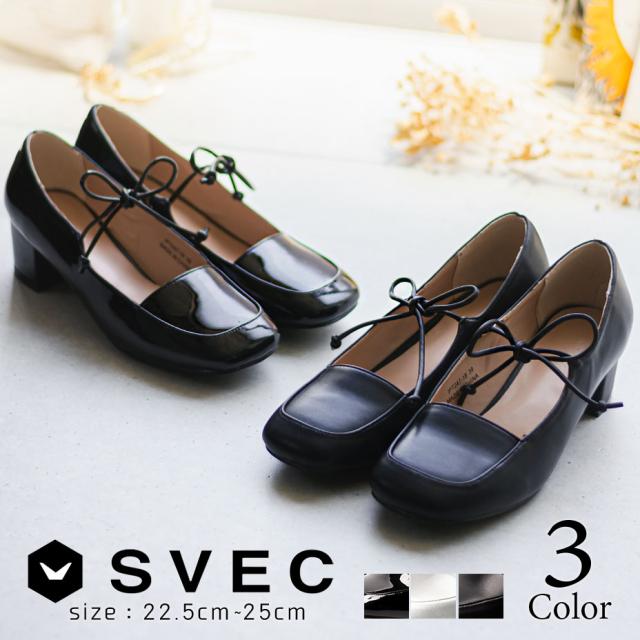 SVEC リボンパンプス ストラップ リボン パンプス 紐 美脚 スタイルアップ 軽量 通勤 結婚式 入学式 エナメル ブラック シルバー 黒 フェミニン ガーリー 靴 シューズ レディース 女性 ストラップパンプス シュベック ブランド