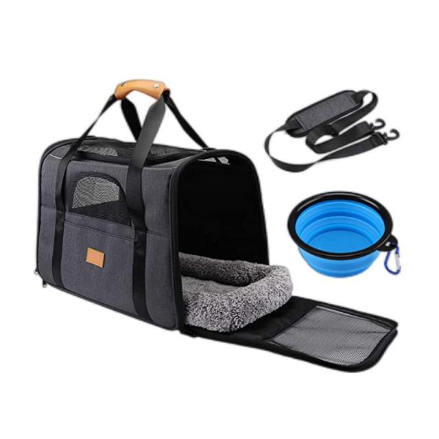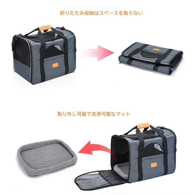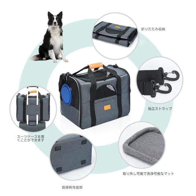 猫 キャリーバッグ ペットキャリー バッグ 犬用キャリーバッグ 4Way 通気性 折りたたみ マット付き 飛び出し防止リード付き 食器付き