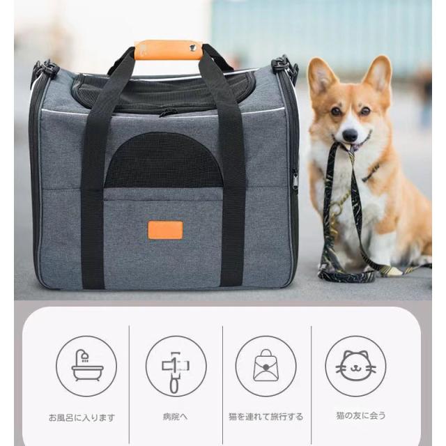 【商品仕様】 サイズ:約44*28*35cm 適用ペット:約8kg以内の小型ペット。(中・大型猫用・小型犬用・うさぎ・小型ペットに適用)。付属品:外部/肩掛けベルト、内部/飛び出し防止リード、犬の鉢、やわらか中敷きマット。