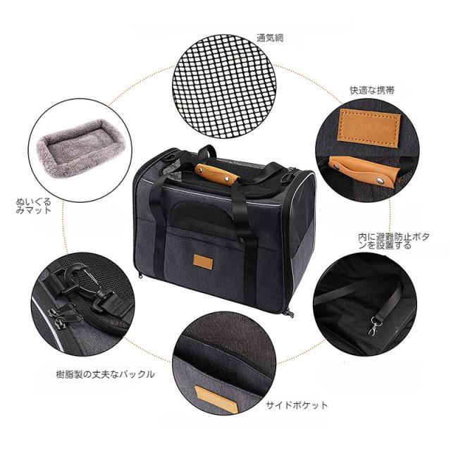 4つのメッシュ窓をを備えて、ペットの顔出しが可能になります。ペットに新鮮な空気を与え、窮屈な感じを与えません。メッシュ窓は高品質の材料を使用して作られて、引っ掻き傷に強い。