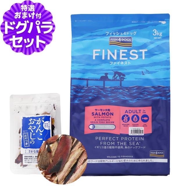 【沖縄以外送料無料】フィッシュ4ドッグ ファイネスト サーモン 大粒 3kg+お試し国産お魚厚削り 15g