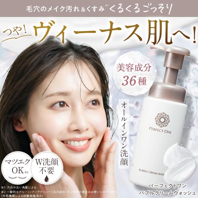 パーフェクトワン バブルクリームウォッシュ 新日本製薬 公式通販 泡 クリーム オールインワン クレンジング 洗顔料 メイク落とし 洗顔 毛穴ケア 角質ケア 保湿 マッサージ 6役 まつエクOK