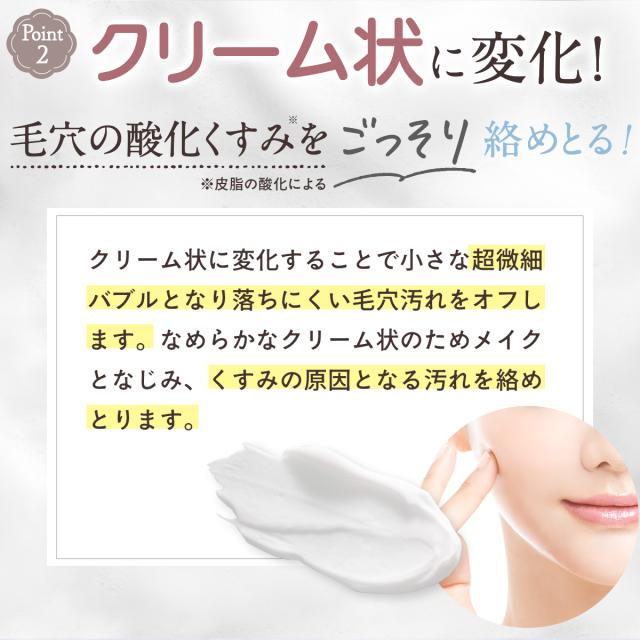 ふんわり広がる泡がクリーム状に変化してごっそりメイク汚れを絡めとる!洗うだけでパッと輝くヴィーナス肌へ導くオールインワン洗顔。