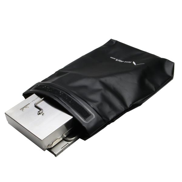 ●口の内側のベルクロで蓋を閉めた後に、さらに蓋を折り返し止める事ができ、水気や臭いが漏れにくくなっています。