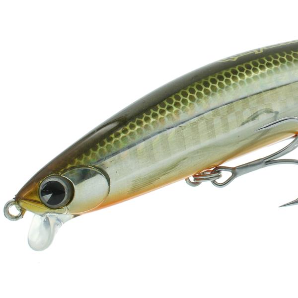 ボディ側面はシルバーよりも濁り水の中でアピールしやすいゴールド(レンズゴールド)を両面に配置し、バック&ベリーは最近釣れると評判のライムグリーンを配置しました。
