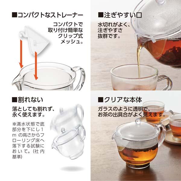 曙産業 クリアティーポット クリップメッシュ L 480ml 落としても割れない!お茶の様子が良く見えるクリアな本体! TW-3754
