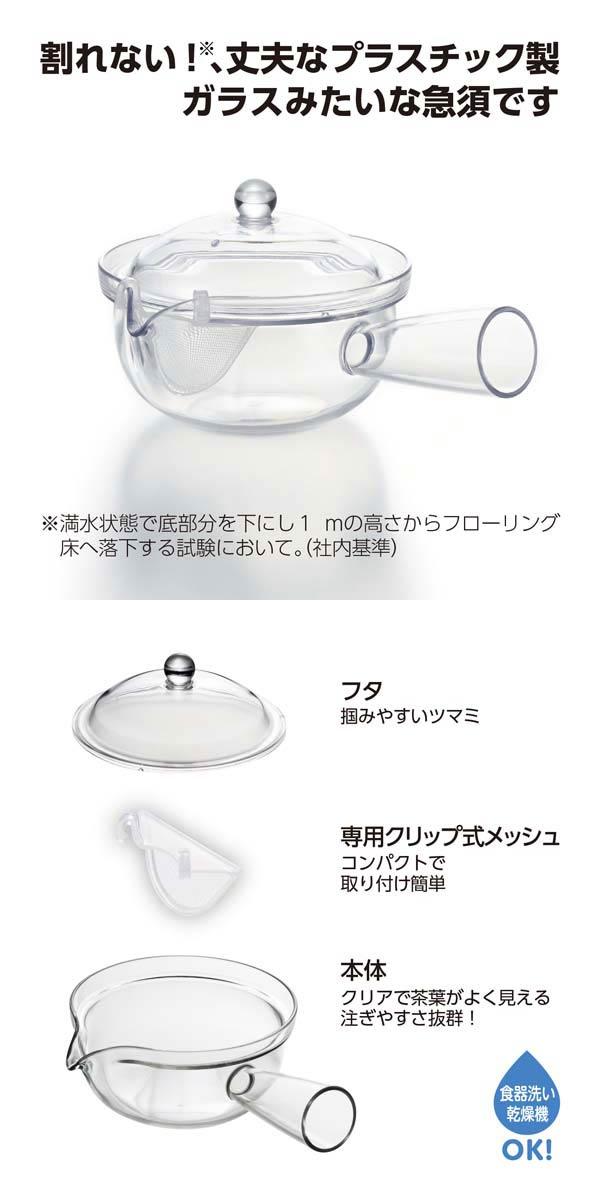 曙産業 クリアティーポット クリップメッシュ 急須タイプ 260ml 落としても割れない!お茶の様子が良く見えるクリアな本体! TW-3749