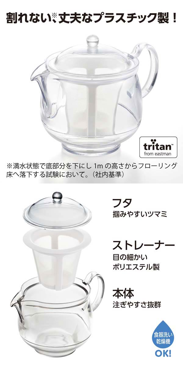 曙産業 クリアティーポット ポリエステルメッシュ LL 730ml 落としても割れない!お茶の様子が良く見えるクリアな本体! TW-3740
