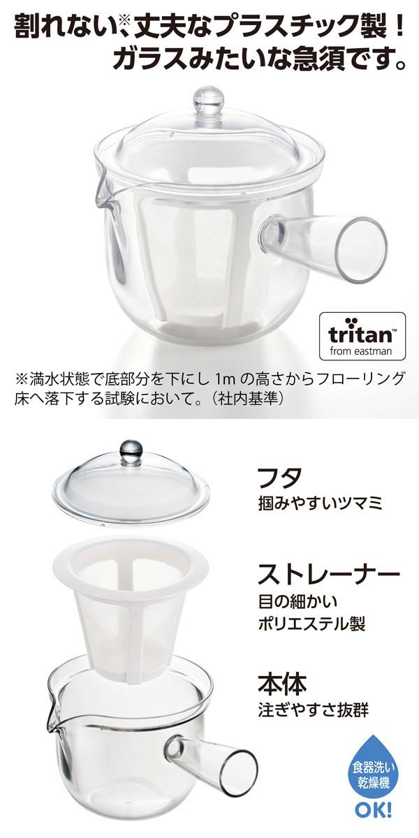 曙産業 クリアティーポット ポリエステルメッシュ 急須タイプ L 480ml 落としても割れない!お茶の様子が良く見えるクリアな本体! TW-3741