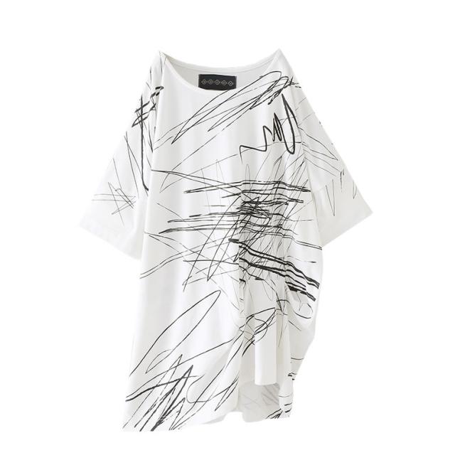 『アートを着こなすコーデ2点SET』 【メール便不可】【20】[2点コーデセット 2024 レディース Tシャツ トップス カットソー 半袖 線画プリント 手書き風 アシメ タック レギパン スキニーパンツ ckz0617]※返品・交換不可※
