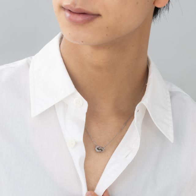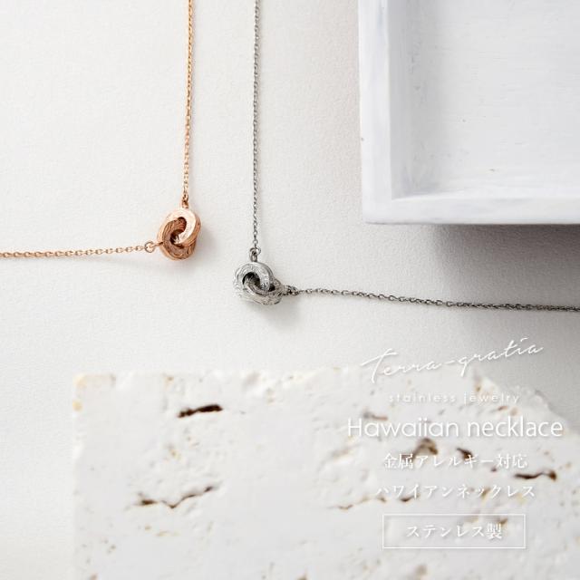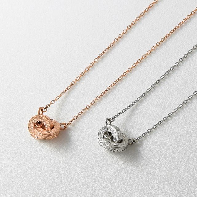 ハワイアンジュエリー ペアネックレス 2本セット 金属アレルギー ステンレス つけっぱなし インフィニティ インターロッキング ダブルリング 2連リング ハワイアン ハワジュ スティールシルバーカラー&ローズゴールドカラー lstn022strg_pair