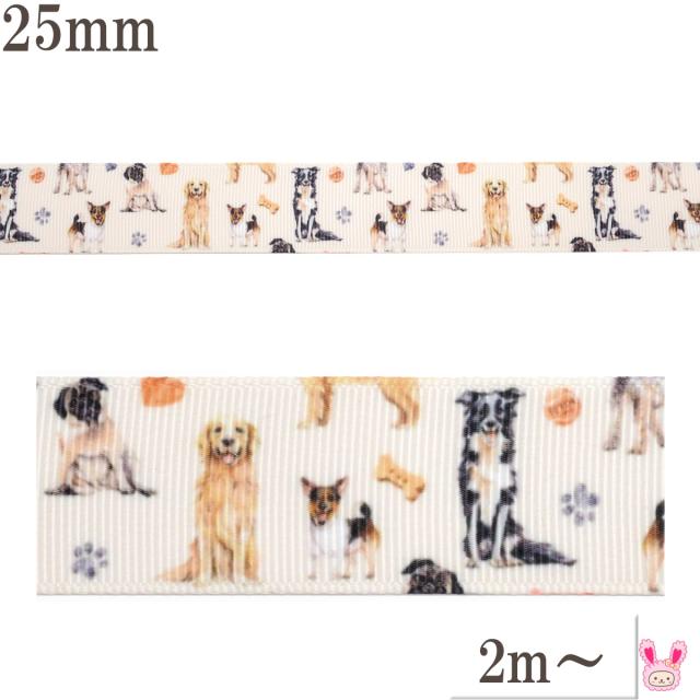 プリントリボン おやつとワンちゃんリボン 幅25mm 1m単位 切り売り (2m以上)