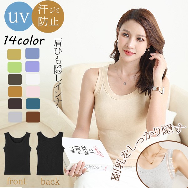 【レビュー投稿で+5%還元】ブラ紐隠し ブラ紐隠しインナー タンクトップ 重ね着 レディース トップス インナー 綿 コットン 無地 tシャツ レディーストップス レイヤード ブラ紐隠せる キャミソール 春 夏 ホワイト ブラック イエロー ブルー グリーン グレー ベージュ