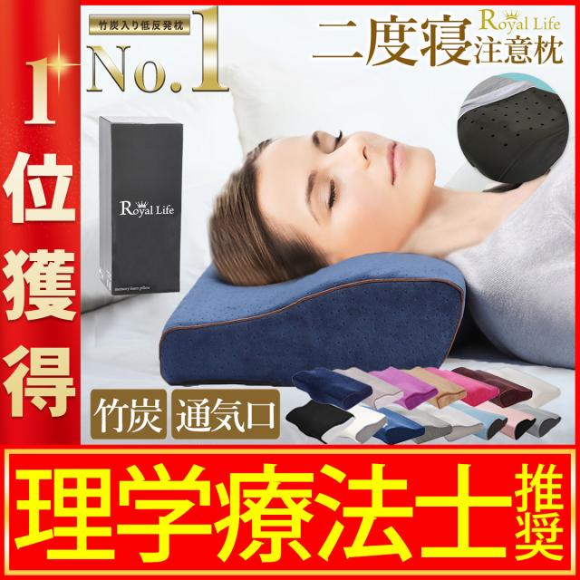 【竹炭 通気】枕 低反発枕 肩こり 首こり 竹炭 通気 穴あき RoyalLife 二度寝注意枕 ギフト 安眠枕 女性 ストレートネック 肩 首 痛み 横向き寝 快眠枕 睡眠枕 まくら 頭痛 頚椎安定型 横寝 いびき