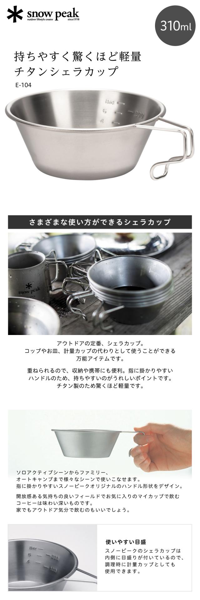 スノーピーク チタン シェラカップ キャンプ アウトドア 食器 コップ 皿 目盛り 計量カップ E104 E-104