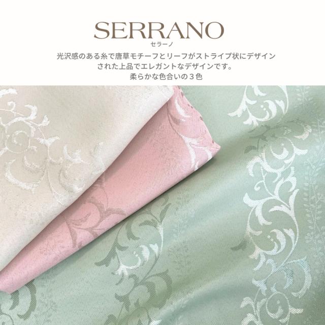 | 光沢感のある糸で唐草モチーフとツタ状になったリーフがストライプにデザインされた上品でエレガントなデザイン。光沢感のあるモチーフは、シンプルなのにラグジュアリーな印象です。やわらかな色合いの3色展開。リビングにはもちろん和室にも合うデザインです。 |