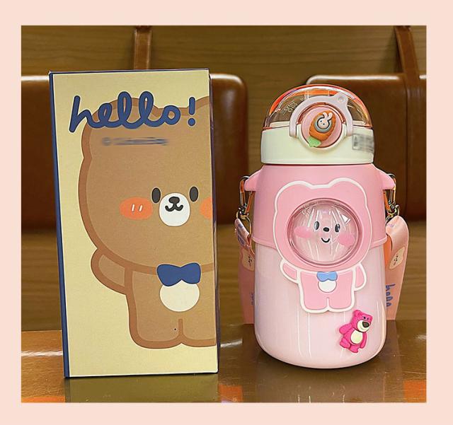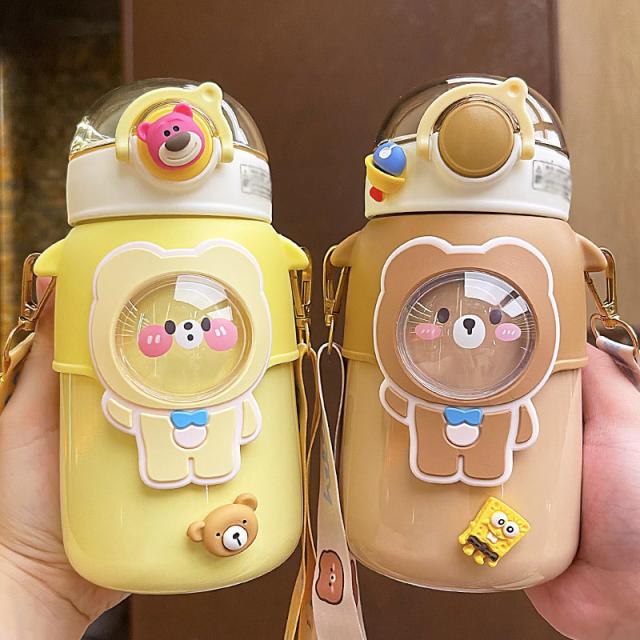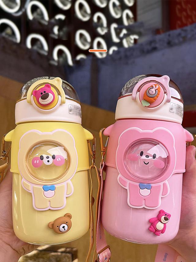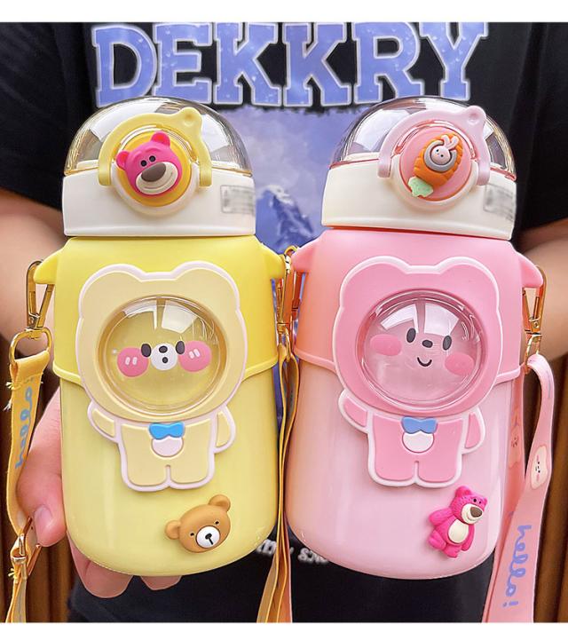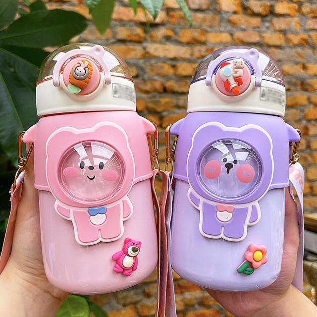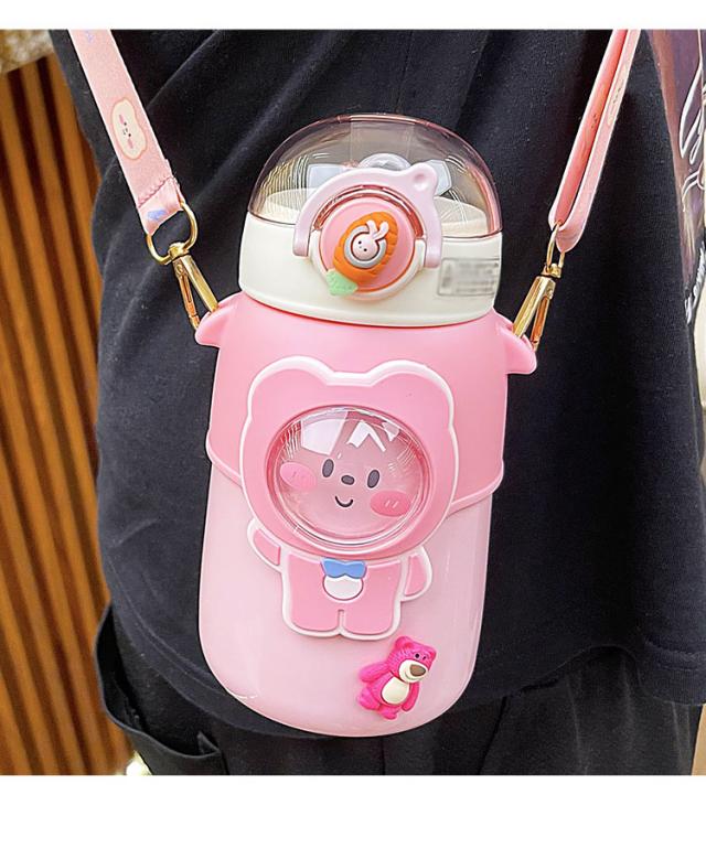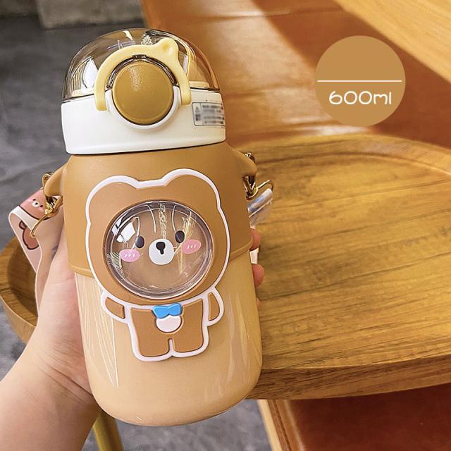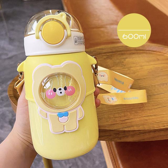 水筒 子供用 600ml ワンタッチ マグボトル ストロー ボトル 真空断熱 大容量 肩掛けベルト付き 女の子 男の子 マグボトル 可愛い アニマル柄 軽い 保育園 幼稚園 小学生 運動会 通学 遠足 旅行 プレゼント