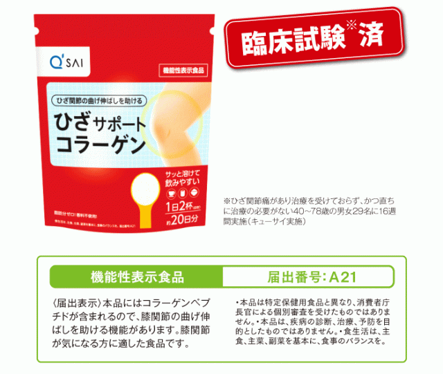 「ひざサポートコラーゲン」は、ひざ関節の曲げ伸ばしを助ける商品として消費者庁に届出し、「機能性表示食品」として受理されました。