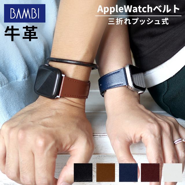 アップルウォッチ バンド スコッチガード 牛革 レザー 撥水 三折れプッシュ式 Dバックル applewatch バンド 38mm 40mm 41mm 42mm 44mm 45mm 49mm apple watch Series1 2 3 4 5 6 SE 8 Ultra RWM022-522 選べるモデル