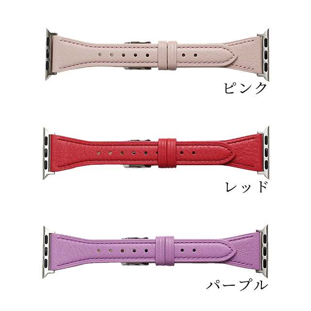 | 仕様 | ・柔らかなシュリンクレザーを使用したモデル。 ・着け心地の良さと、表面のやさしく自然なシワ感が特徴です。 ・花をイメージしたカラーがアップルウォッチを華やかに彩ります。 ・末端にかけて細くなるテーパードタイプで、手首の細い方や女性におすすめです。 ・本製品はApple純正品ではございません。 ・ベルトの留め具色はシルバーのみです。 |