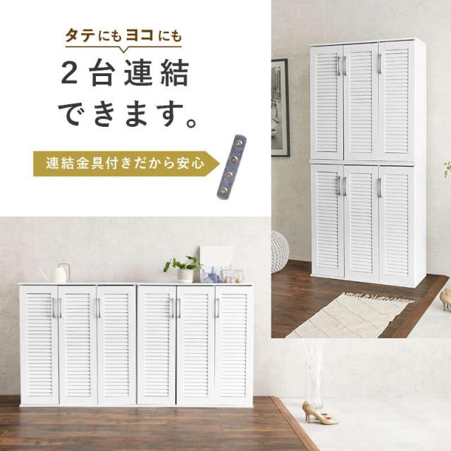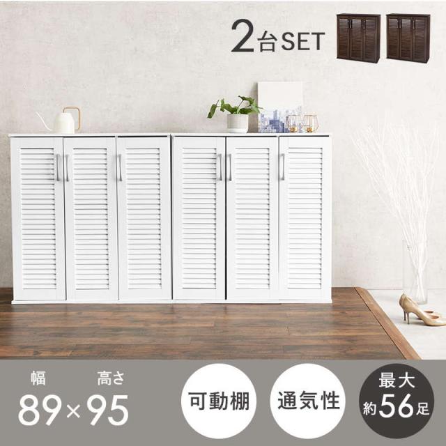 シューズボックス 下駄箱 ルーバー扉 スリム 薄型 幅89cm 2点セット おしゃれ 木製 玄関収納