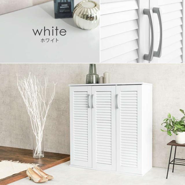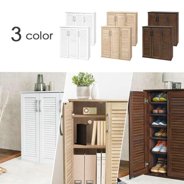 ●通気性が良いルーバー扉と背面の通気口で湿気や臭いがこもりにくいシューズラック。