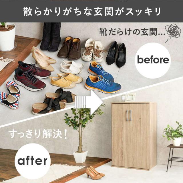 シューズボックス 下駄箱 スリム 薄型 幅60cm 2点セット シンプル おしゃれ 木製 玄関収納