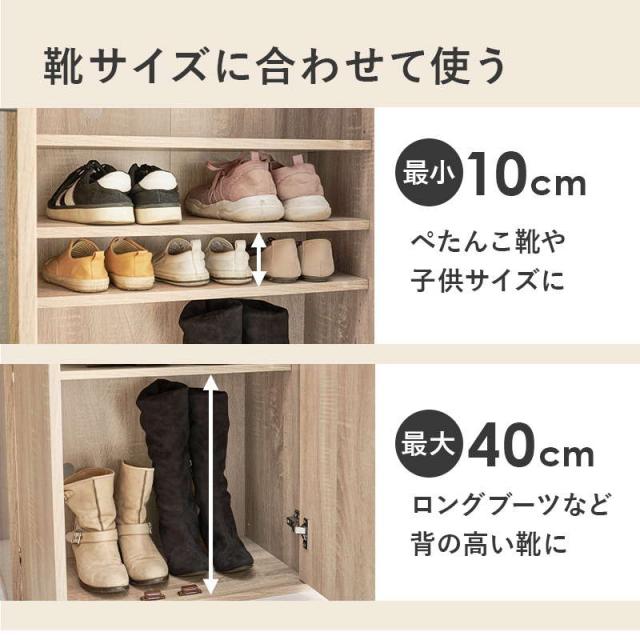 ●高さ調節できる棚板で靴のサイズや形状に合わせてカスタマイズが可能。