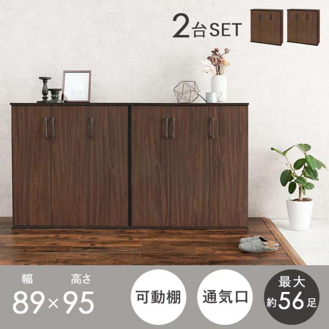 シューズボックス 下駄箱 スリム 薄型 幅89cm 2点セット シンプル おしゃれ 木製 玄関収納