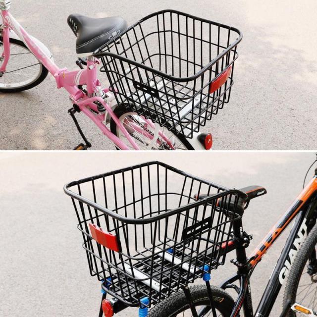 自転車用 リアバスケット 後ろカゴ 後ろかご 固定式 大容量 反射板付き スチール 荷物 荷台 通勤 通学 買い物 ブラック 黒
